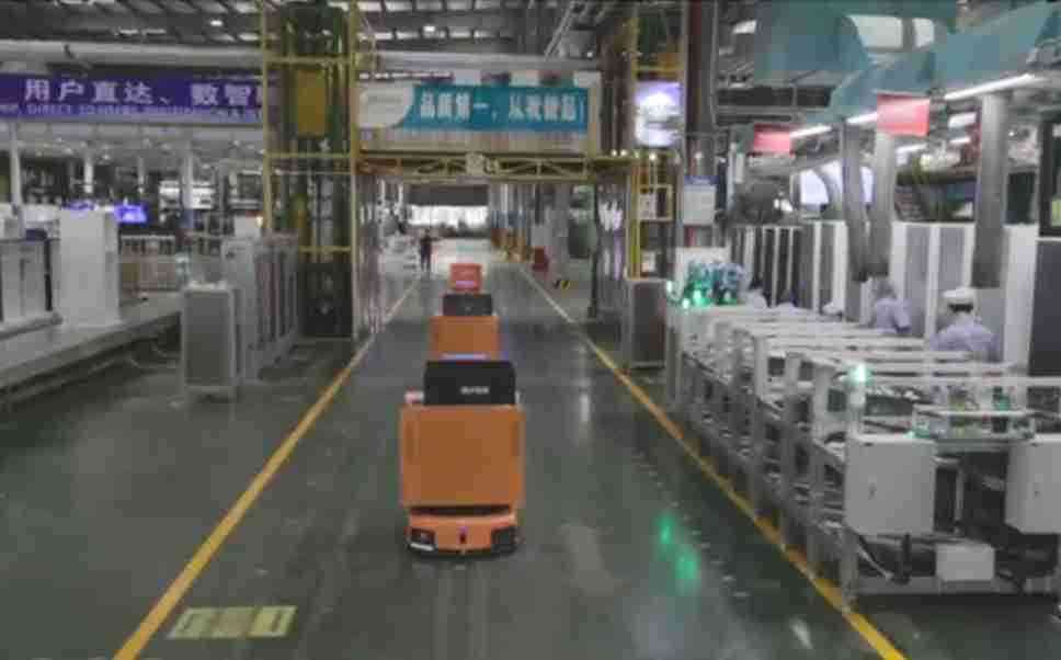 为车载冰箱物流配送打造的智能解决方案,,包含产中物流通过潜伏举升AMR搬运至线边,,,产后成品物流智能仓储,,,流程包含产中物流智能齐套入库,,线边安灯叫料AMR智能配送至线边,,,成品入库、、、、出库,,,通过无人堆高车机器人,,,智能仓储管理替代人工作业管理,,实现更高存储、、、更高效率、、、更具柔性化的解决方案。。。